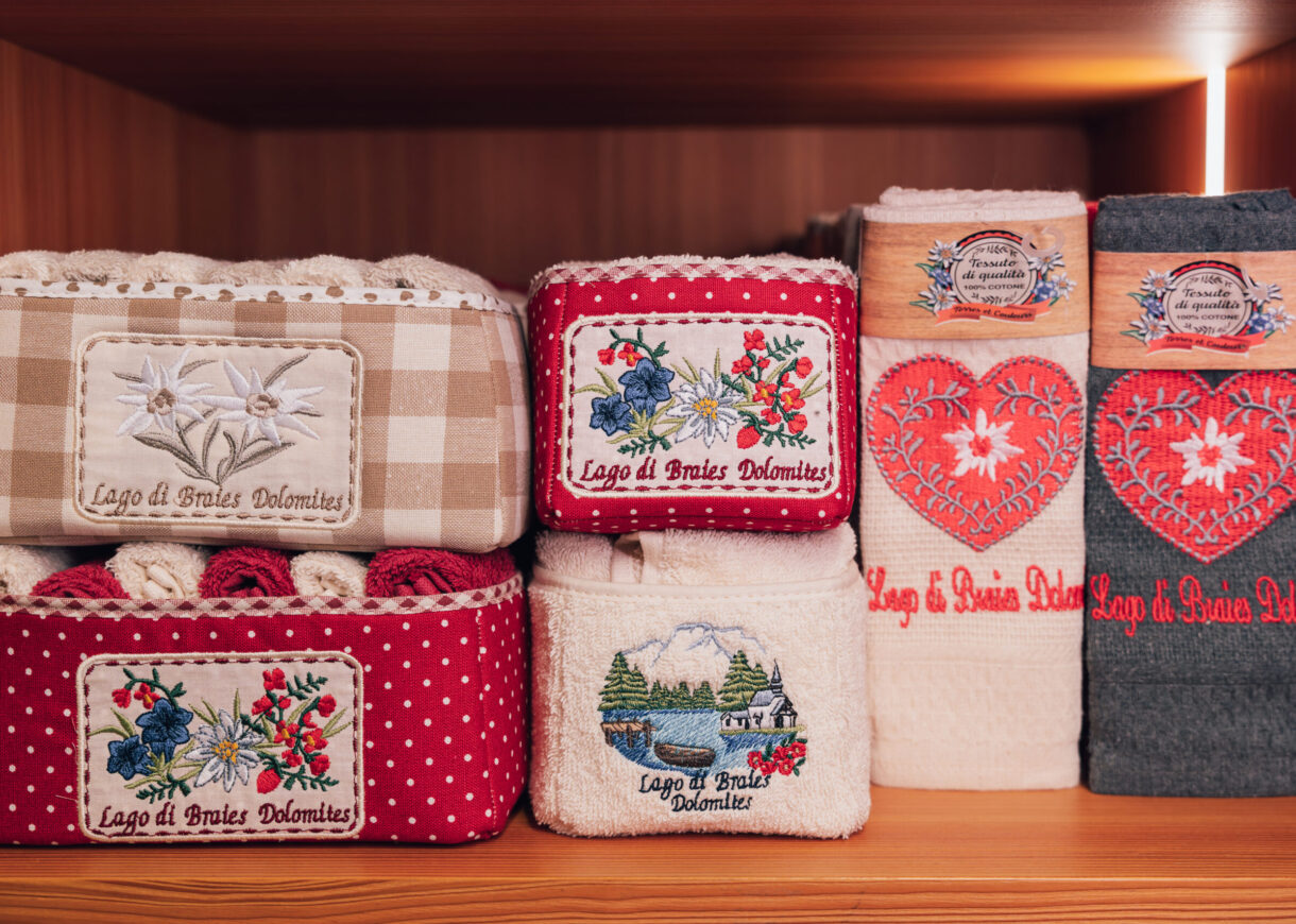 Besuchen Sie unseren charmanten Souvenirshop an der Nordseite des Hotels am Pragser Wildsee und entdecken Sie eine vielfältige Auswahl an typischen Südtiroler Souvenirs. Von traditionellen Kuckucksuhren, handgefertigten Zwergen bis hin zu Postkarten mit traumhaften Motiven – hier finden Sie liebevoll ausgewählte Erinnerungsstücke an Ihren Urlaub in den Dolomiten.